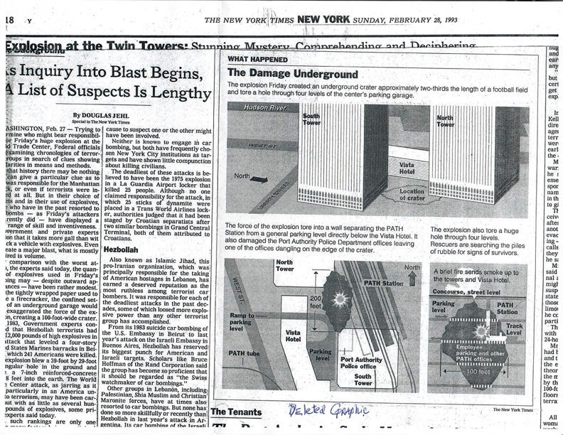 The New York Times, which produced the most extensive coverage of this story, was fast off the mark claiming that Mohammad Salameh -- who they suspected had probable terrorist connections -- was an "Islamic fundamentalist". Its description of the WTC bombing as "sophisticated" turned to primitive, and the key graphic describing the pattern of damage disappeared from NYT archives, along with other information that did not fit the official government narrative.