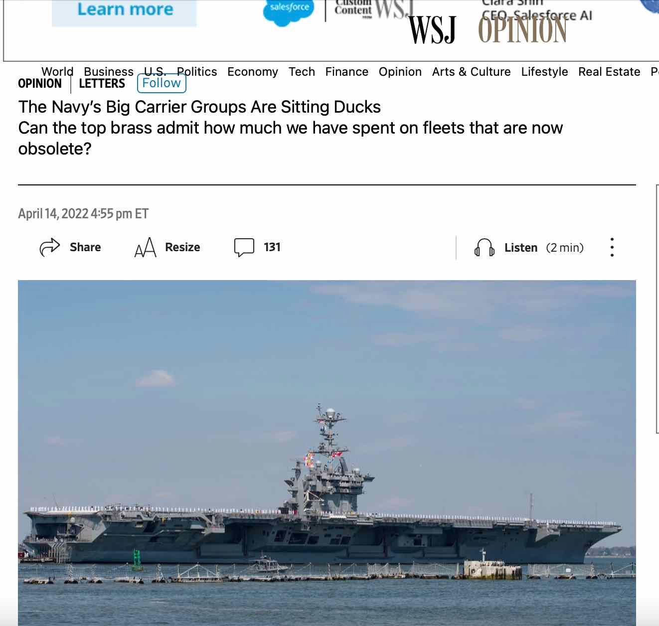 Today, a few cheap anti-ship missiles can easily take out a $12.998 billion dollar carrier. That’s ominous in light of the fact that next Monday, October 23, is the anniversary of the 1983 Marine barracks bombing that killed over 300 people and wounded over 100 more.