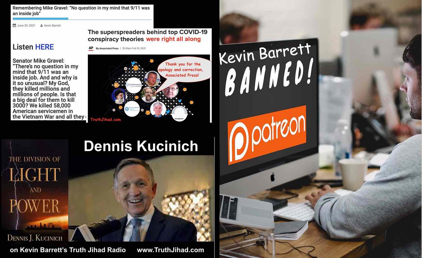 In any event, Patreon’s censorship was obviously political, not medical. They terminated me shortly after I broadcast back-to-back interviews with two big-name American politicians, Rep. Dennis Kucinich and Sen. Mike Gravel. The Kucinich interview touched on America’s extreme corruption including high-level political assassinations, while my rebroadcast Gravel interview, complete with newly-minted transcript, featured the Senator speaking powerfully for 9/11 truth. These topics, like COVID as neocon biowar, are taboo in the lamestream as well as pseudo-alternative media; they are career-killers, because the careerists have gotten the message that the Deep State will crush anyone with sufficient “reach” who talks about them.