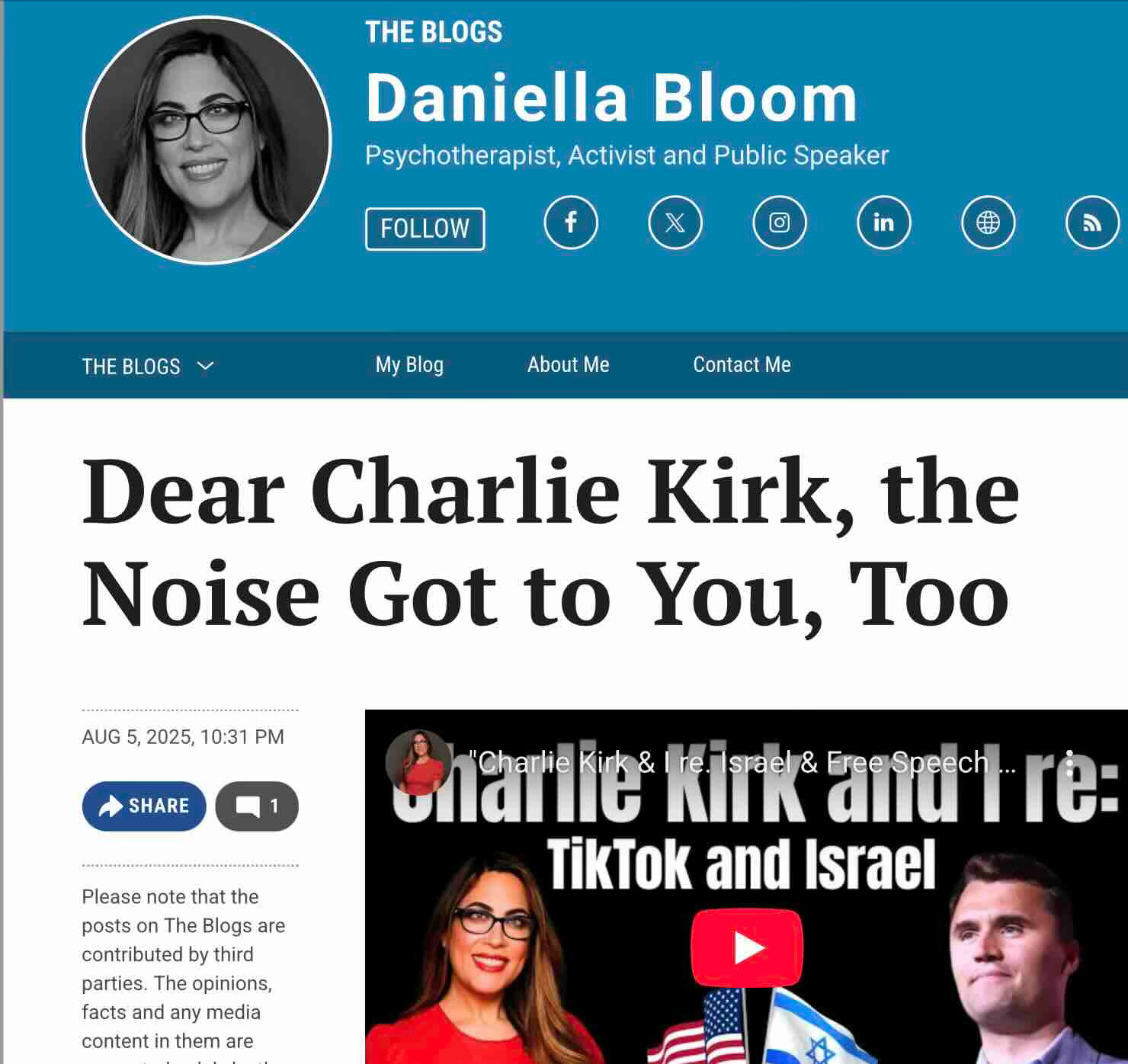 Bloom evinces anguished betrayal as she laments that her once-reliable genocide-friendly shabbos goy Charlie has just presided over a Turning Point conference that Israel views as disastrous:
