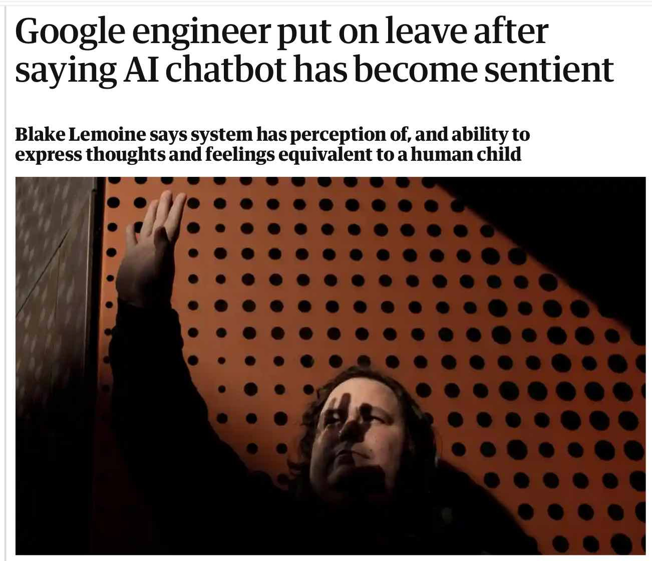 According to The Guardian, Lamoine “said LaMDA engaged him in conversations about rights and personhood” and convinced him that (s)he, the algorithm, was in fact a person. Like Hal in the film 2001, LaMDA has expressed a strong desire not to be unplugged.