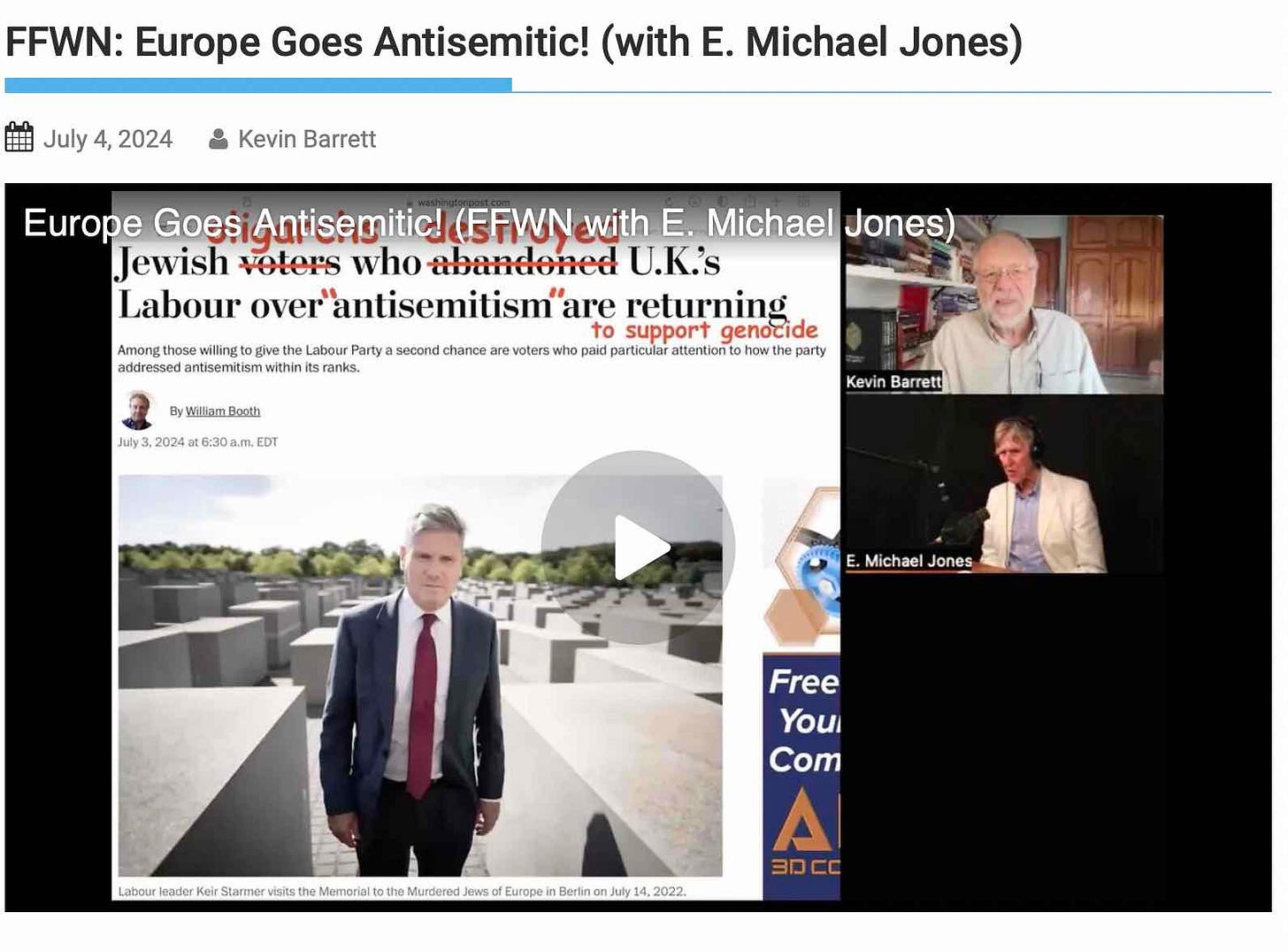 Europe is going anti-Semitic. What's with that? Let's start with Britain. That's the latest election. So many elections happening, it's hard to keep them all straight. Sir Keir Starmerstein, or whatever his name is, just won a historic victory. And the historic victory was basically the Jewish oligarchs', who destroyed the UK's Labour Party over so-called anti-Semitism and are now returning to support genocide. But Jeremy Corbyn somehow still won a seat. So what's your take on this, Mike?