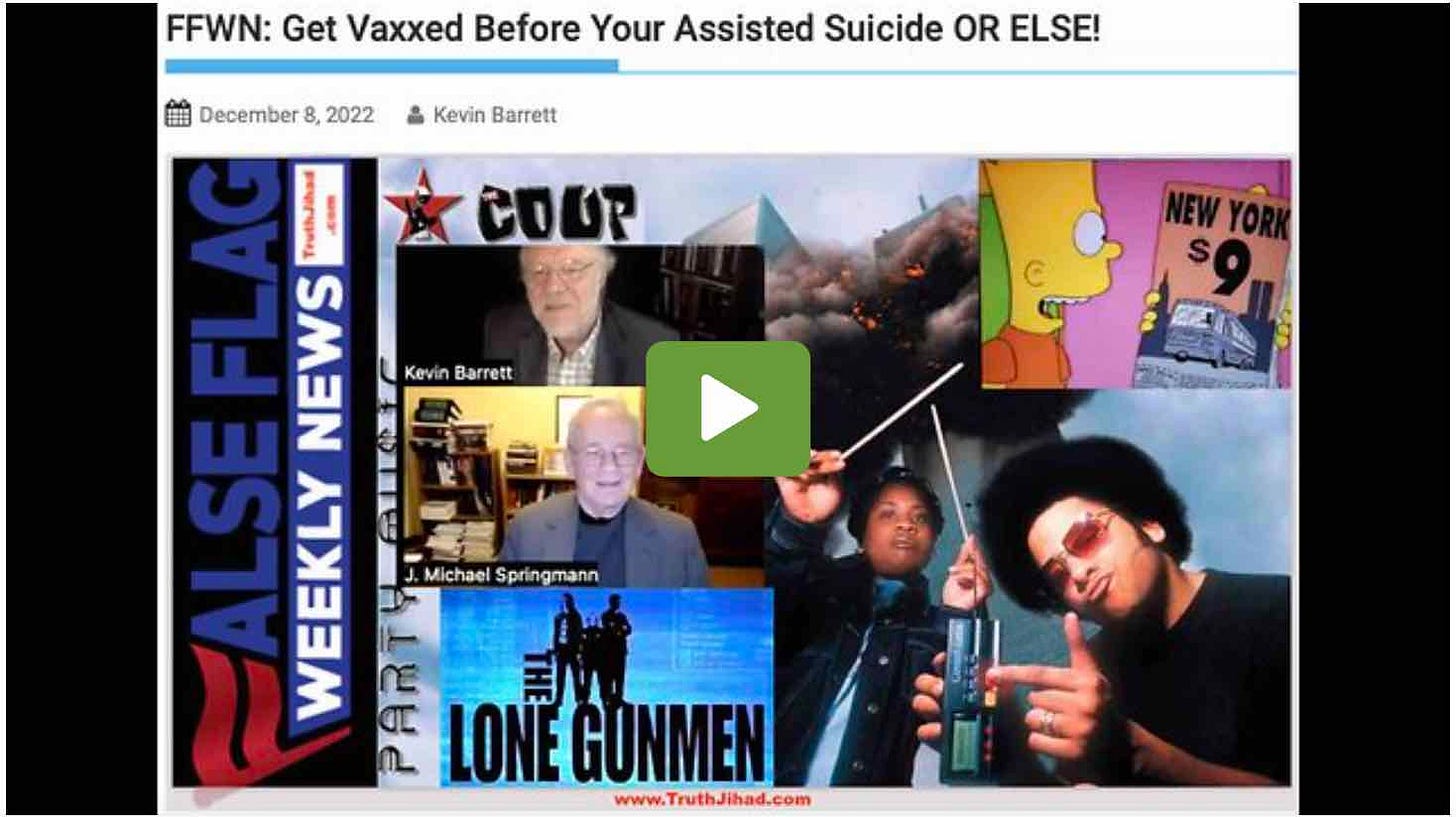 In a sane world, people would stop vaccinating—or at least save the vaccines for the population groups that arguably might benefit. But the world, as FFWN viewers know, is far from sane. So what began as an allegedly rational medical intervention has become an article of faith. The requirement to vaxx-up before your suicide is a purely religious requirement, not a scientific or medical one.