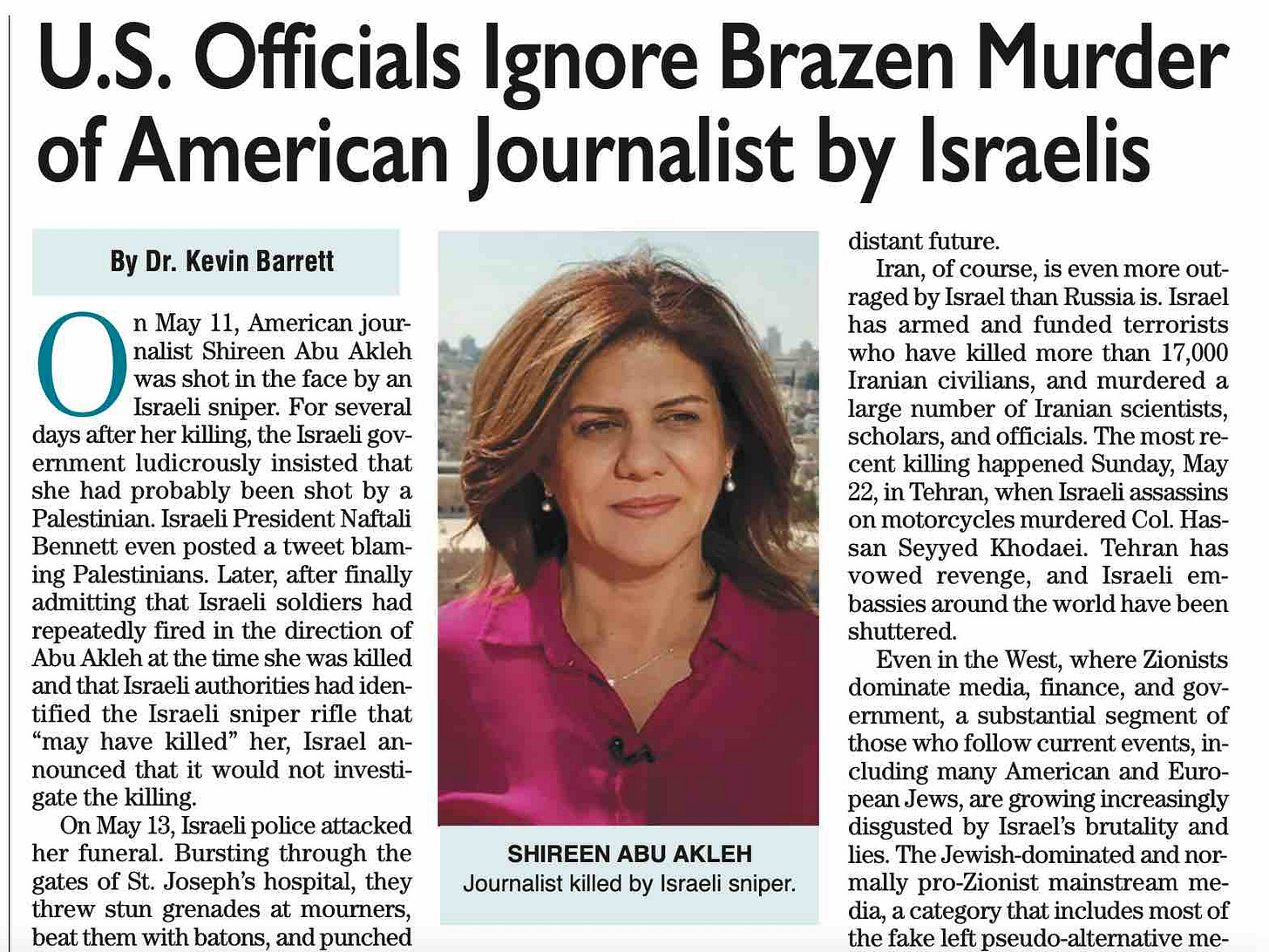 Even in the West, where Zionists dominate media, finance, and government, a substantial segment of those who follow current events, including many American and European Jews, are growing increasingly disgusted by Israel’s brutality and lies. The Jewish-dominated and normally pro-Zionist mainstream media, a category that includes most of the fake left pseudo-alternative media, covered the killing of Shireen Abu Akleh relatively honestly.
