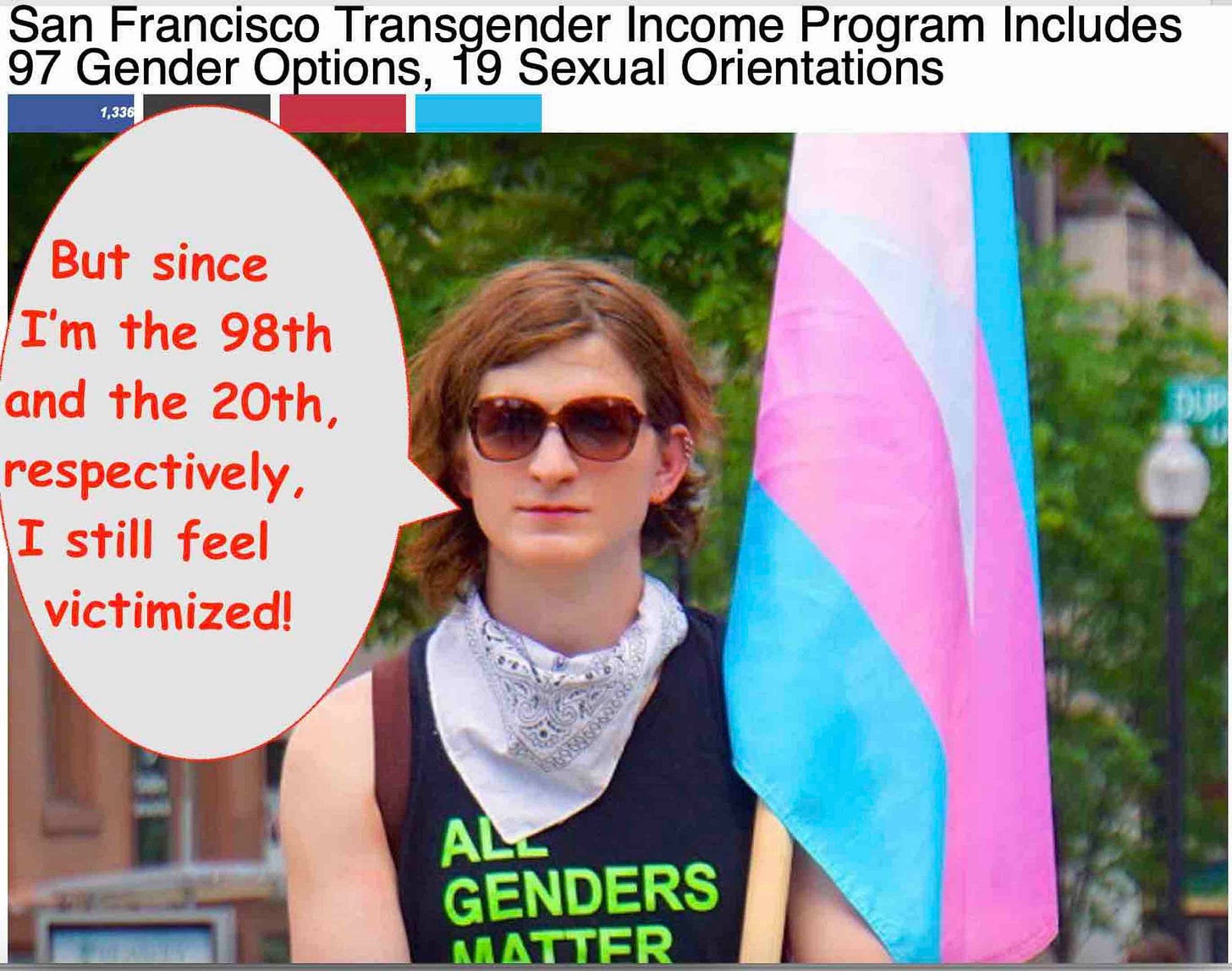 Can you imagine holding an athletic event in a country that only recognizes two genders? Don’t they know that “male” and “female” are passé, oppressive, and supremacist? Haven’t they heard that civilized cities like San Francisco now recognize 97 gender options and 19 sexual orientations?
