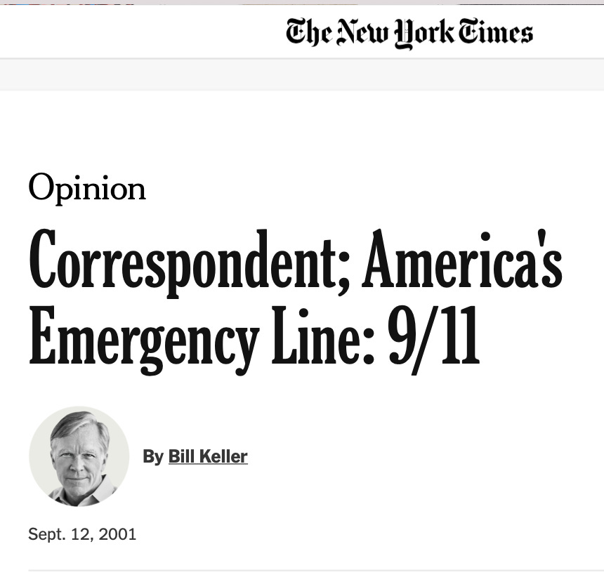 Bill Keller’s prescient article of September 12th 2001, whose thesis is “the USA is now identical with Israel,” is certainly suspicious.