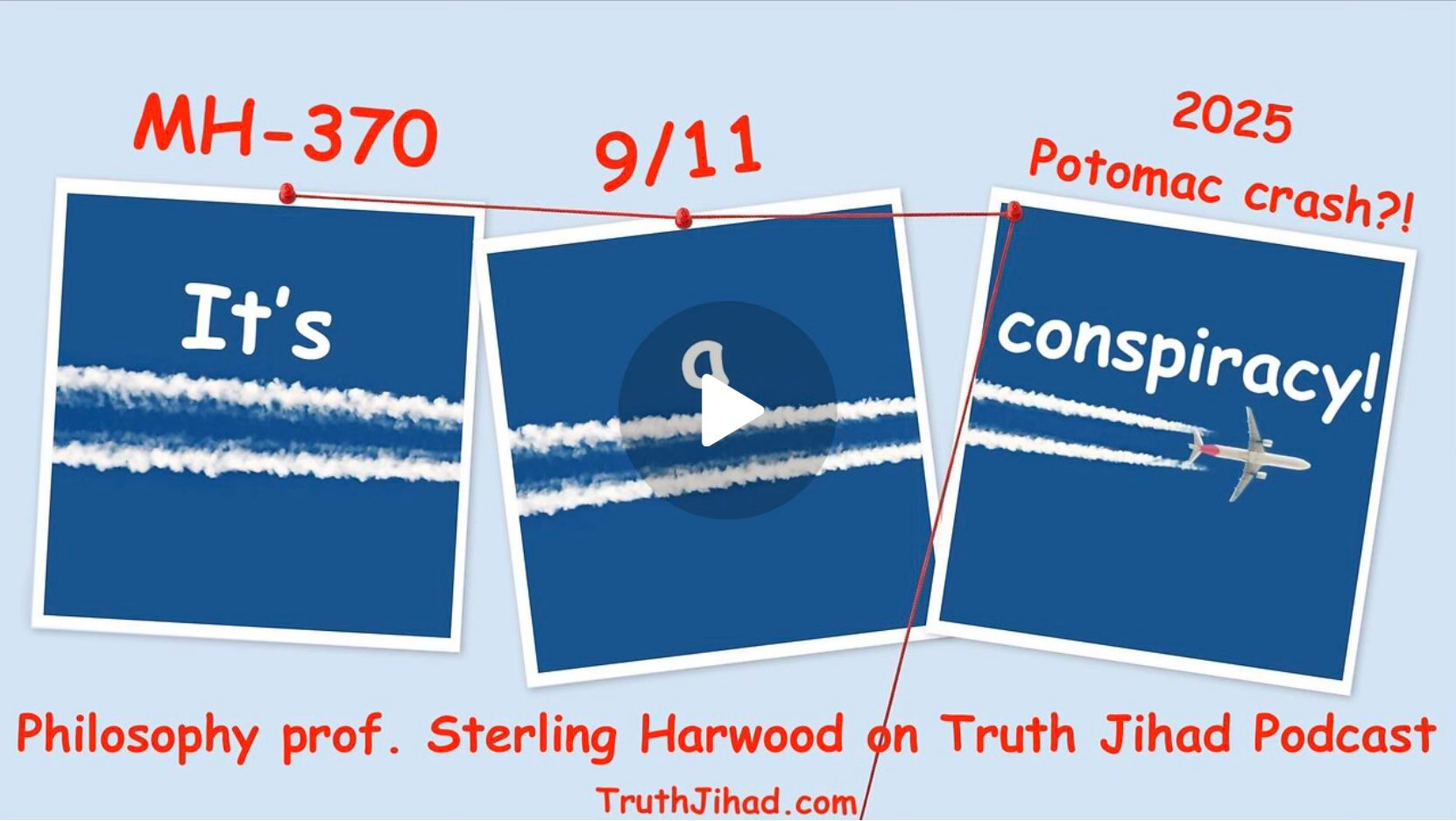 Lawyer, philosophy teacher and author Sterling Harwood discusses three alleged aerial conspiracies: 9/11 (obviously a conspiracy), the disappearance of Malaysian airliner MH-370 (very likely a conspiracy) and the 2025 Potomac helicopter-vs.-jet crash (???)