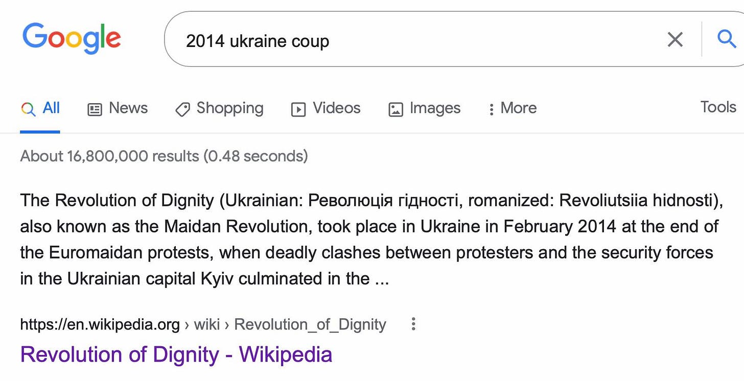 Look what happens when you ask the CIA, which runs Google, about the “2014 Ukraine coup”: