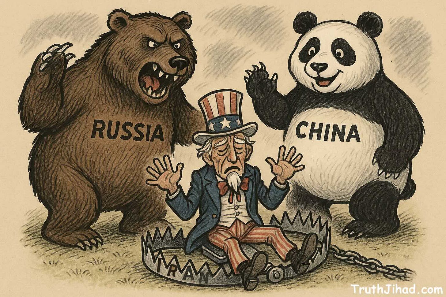 If you were a strategist in Moscow or Beijing, you would want to encourage the Americans and their Israeli masters to keep wading ever-deeper into the Iranian quagmire. You would do that by sending their leadership superficially reassuring messages (“don’t worry, do what you have to in Iran, we don’t want World War III”) while covertly working overtime to make sure Iran will get whatever help it needs to keep fighting for however many months or years or decades it takes…most likely months, since the American people, starting with Trump’s base, have no stomach for any more “endless wars.” But from your Russo-Chinese perspective, the longer and more destructive the war, the better. Specifically, you would take steps to ensure that no matter how much destruction Iran suffered, it would emerge on the other side with nuclear weapons and a gargantuan, permanent chip on its proverbial shoulder…in the worst case scenario (for both the Iranians and Americans) Iran would become “the North Korea of the Middle East”… except that by that time being excluded from Western-dominated institutions will mean next to nothing because the West will no longer rule the world.