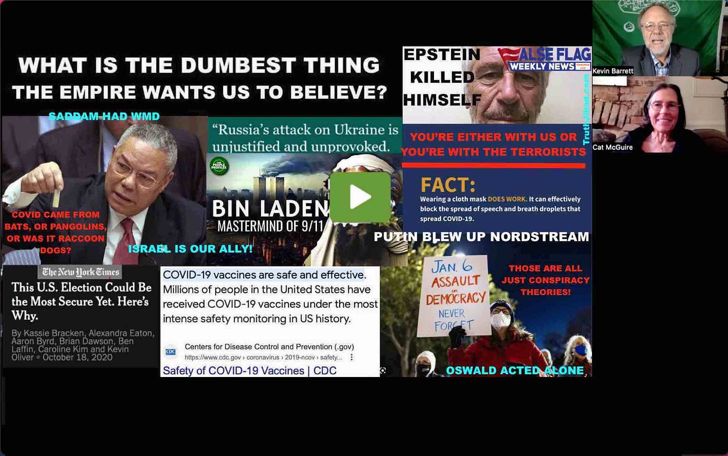With respect to what some people were/are unfortunately born into concerning “many stupid narratives” that our rulers inflict on us, off the top of my head I'll have to represent the many people who have any sense on this planet in these first 25 years or so of the internet and say these 4 things take the cake: