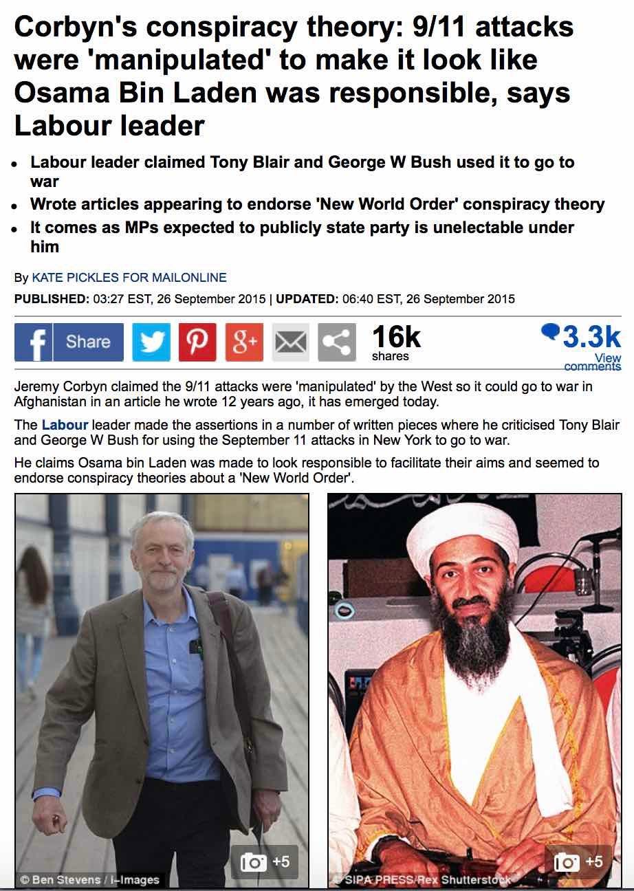 Chomsky tells us that the safest thing you could do is question 9/11. Well, Michael Meacher, who put out a number of brilliant 9/11 truth pieces earlier on, then had his life threatened and shut up for a long time. But he kept advising people like Jeremy Corbyn, and is now dead.