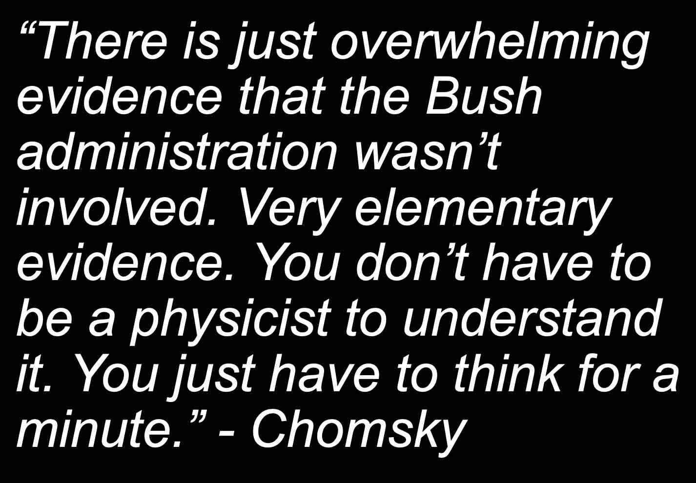 So we hear (from Chomsky) that "there is, in fact, overwhelming evidence that the Bush administration wasn't involved in 9/11. It's very elementary evidence. You don't have to be a physicist to understand it. You just have to think for a minute."