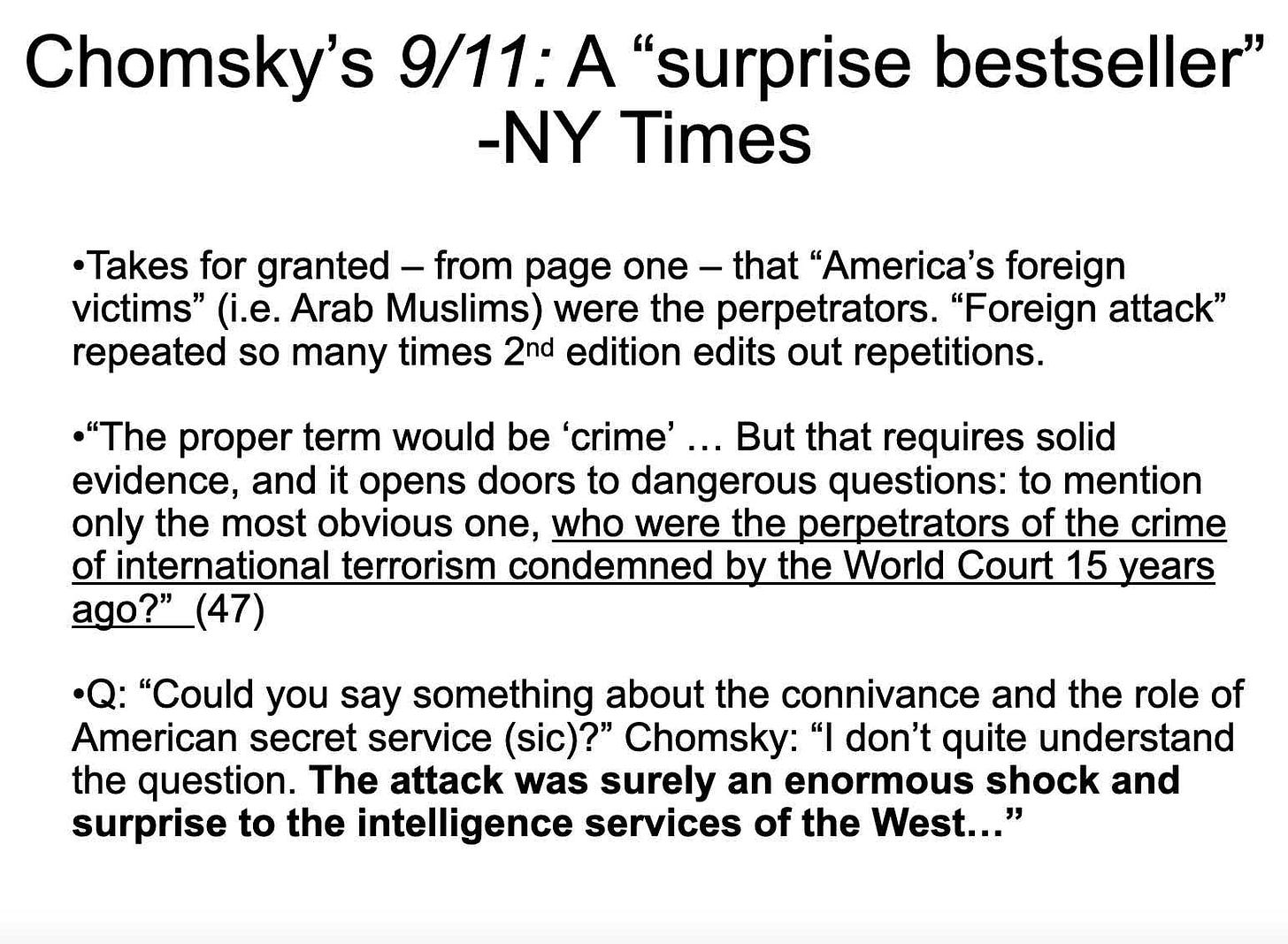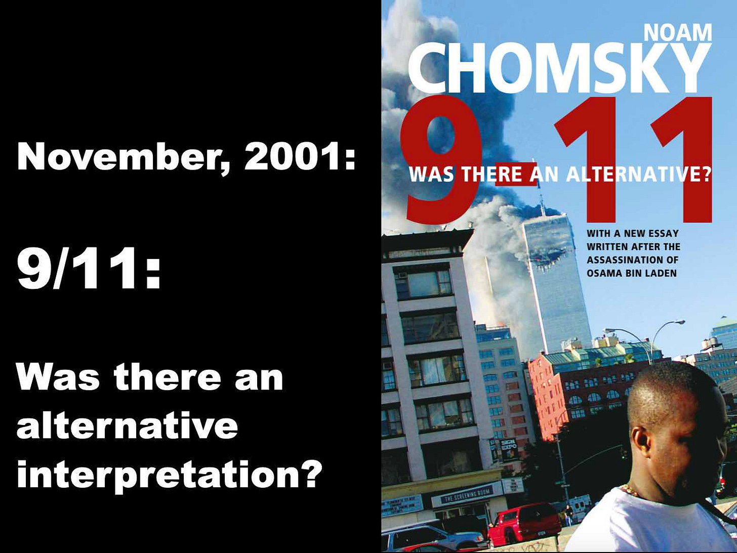 Let's move to the next slide, which is the front cover of Chomsky's reissued book on 911.