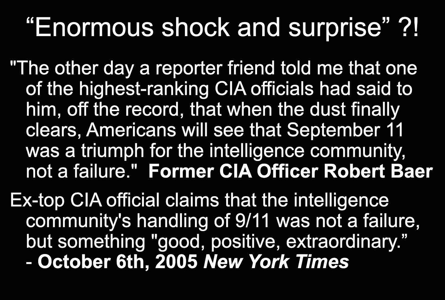 Top CIA officials tell us that the intelligence community's handling of 9/11 was not a failure, but something, quote unquote, "good, positive, extraordinary." The top of the CIA crowing that 9/11 was "good, positive, extraordinary." This was the shock and surprise that Chomsky was trying to tell us about back in 2001?! I don't think so.