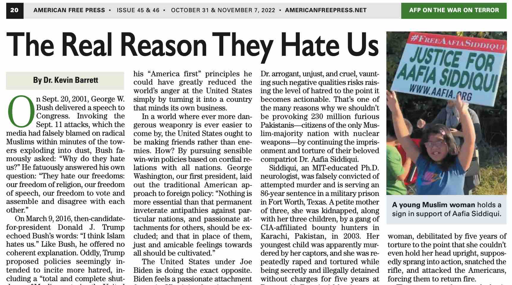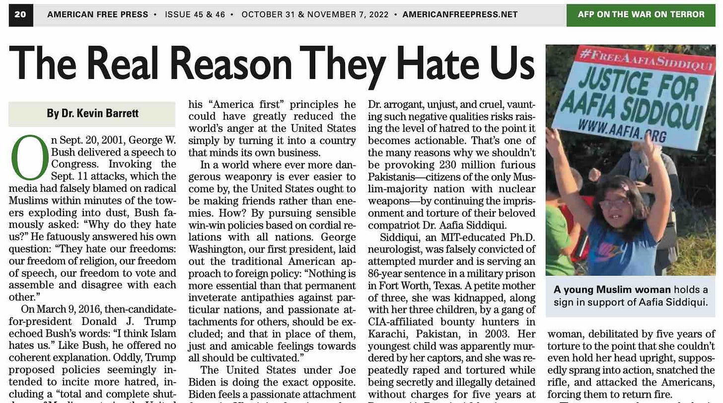 “Why Do They Hate Us?” Ask Aafia Siddiqui
