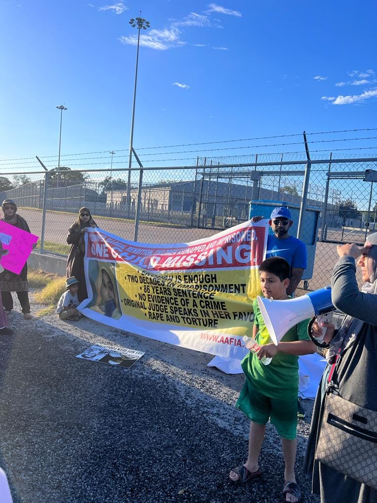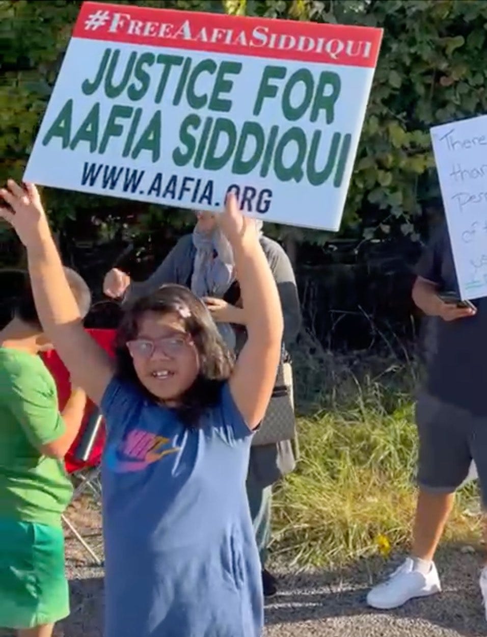 Siddiqui, an MIT-educated Ph.D. neurologist, was falsely convicted of attempted murder and is serving an 86-year sentence in a military prison in Fort Worth, Texas. A petite mother of three, she was kidnapped, along with her three children, by a gang of CIA-affiliated bounty hunters in Karachi, Pakistan, in 2003. Her youngest child was apparently murdered by her captors, and she was repeatedly raped and tortured while being secretly and illegally detained without charges for five years at Bagram Air Base in Afghanistan.